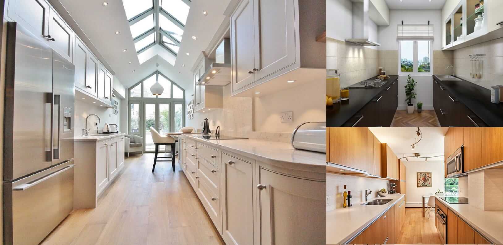 Параллельная или двухрядная планировка. Данная планировка напоминает линейную: два ряда мебели выстраиваются друг напротив друга вдоль стен. Чаще всего такую планировку выбирают для проходных помещений. Если же комната не позволяет оставить проход хотя бы 1,5 метра, то стоит отдать предпочтение линейной планировке. При параллельной планировке уже появляется полноценный рабочий треугольник: лучше всего расположить холодильник на одной стороне, а мойку и плиту – на другой, так сократится расстояние, пройденное во время приготовления еды.