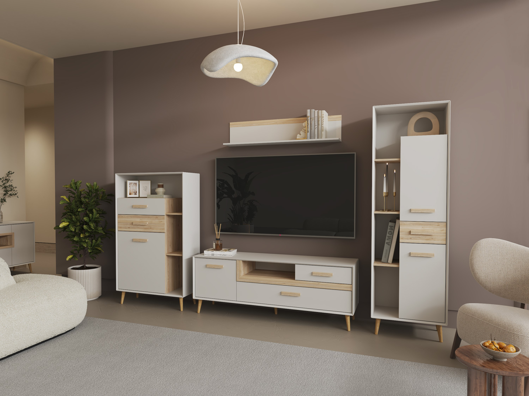 Функциональная система хранения позволит разместить все необходимое, а на открытых полках всегда можно расположить любимые книги, фото или декоры.