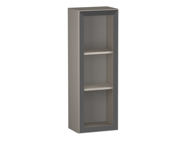 Навесной шкаф благодаря компактым размерам и современному фасаду со стеклом будет отличным дополнением гостиной.