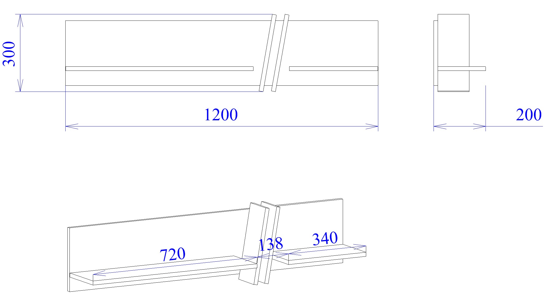 Допустимая нагрузка на полку навесную не более 5кг