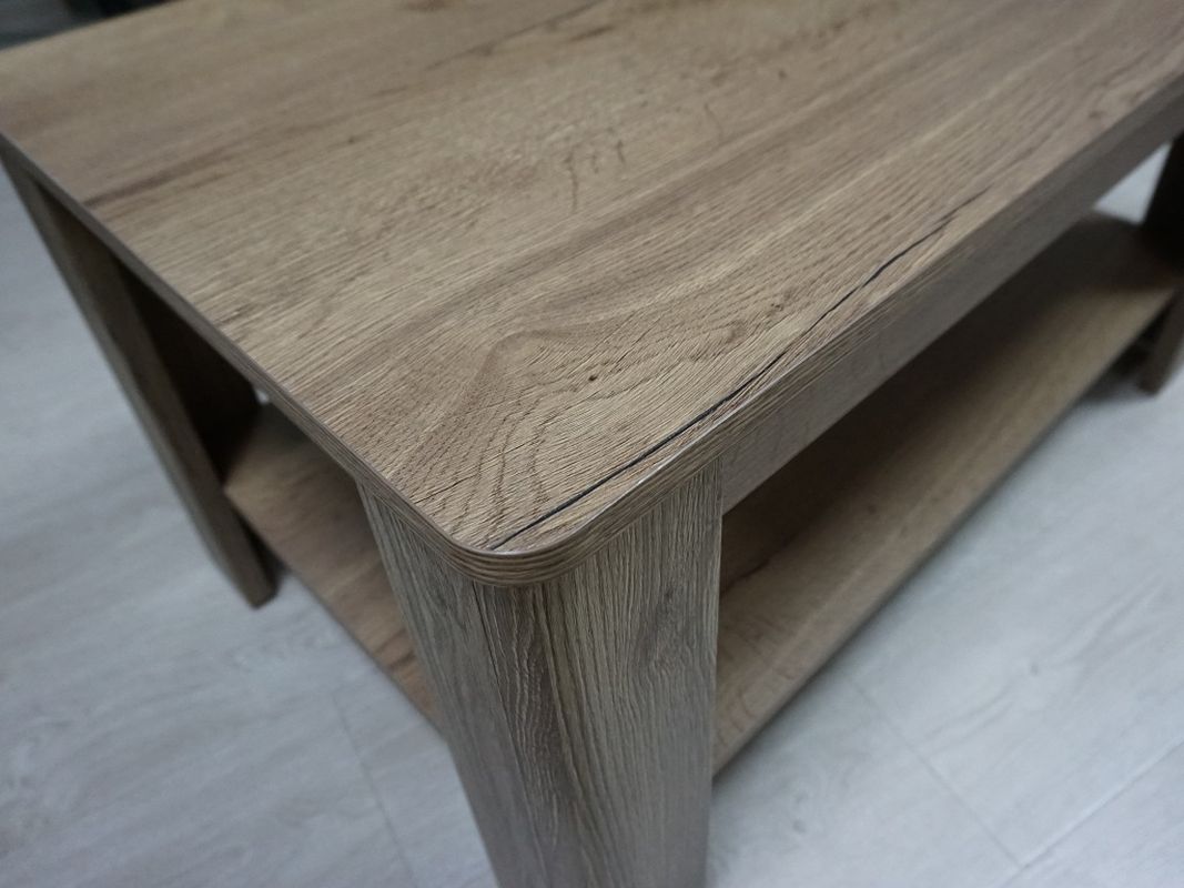 Столик удобный, надежный и долговечный, чем полностью оправдываем цену. Его изюминкой является благородный декор под дерево с красивой природной текстурой. Такое решение актуально для разных концепций интерьера и хорошо сочетается с другими материалами в отделке помещения.