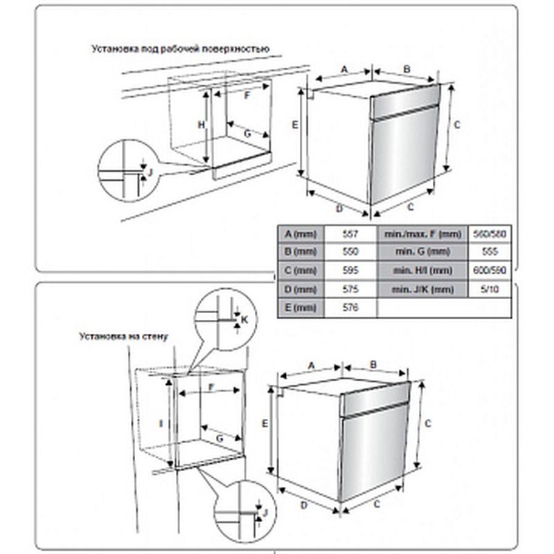 Размеры ниши для встраивания (ВхШхГ) : 600х560х550 мм.