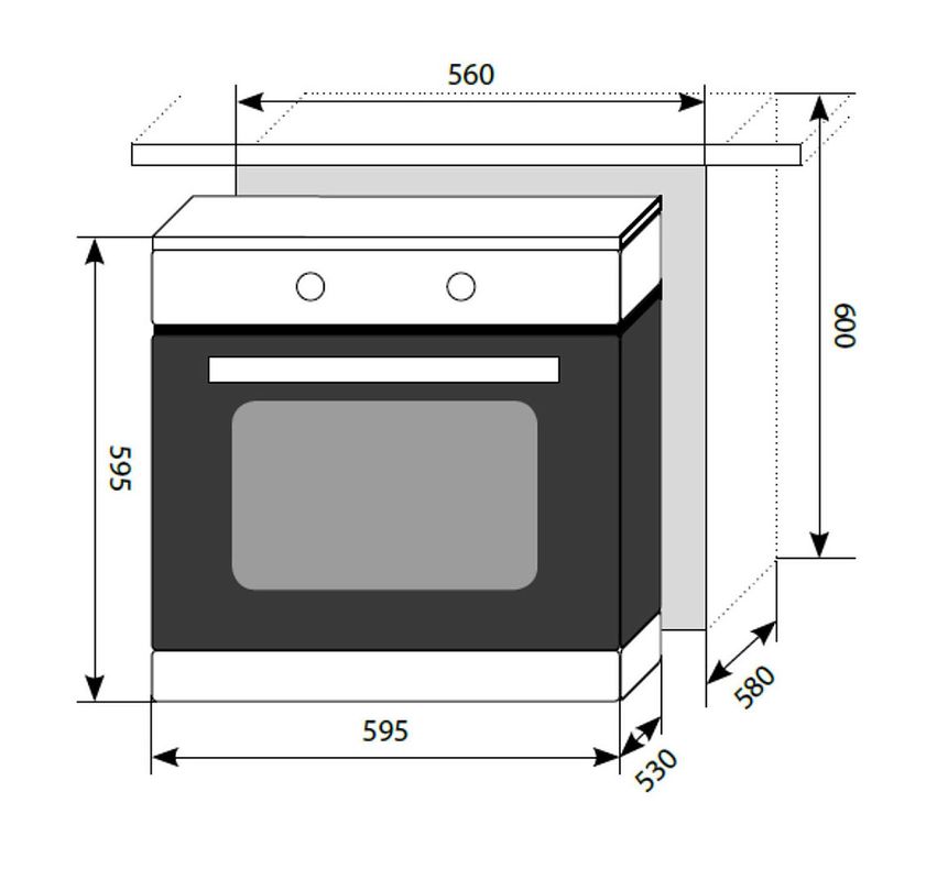 Размеры ниши для встраивания (ВхШхГ) : 585х560х560 мм.