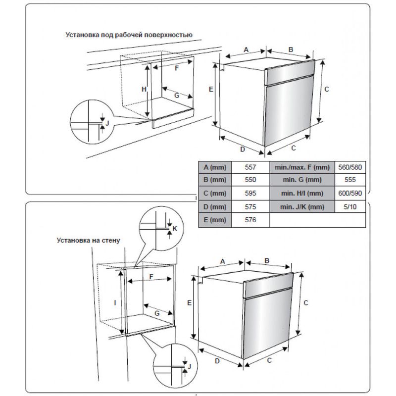 Размеры ниши для встраивания (ВхШхГ) : 600х560х550 мм.