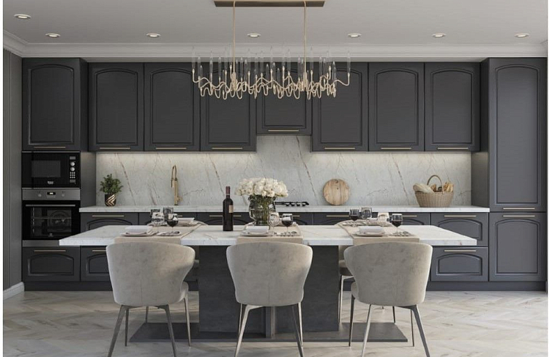 В каталоге представлены гарнитуры в современном, классическом, скандинавском, минималистичном и других стилях. Предлагаем 70 вариантов фрезеровки фасадов и 75 декоров, чтобы вписать мебель в интерьер.