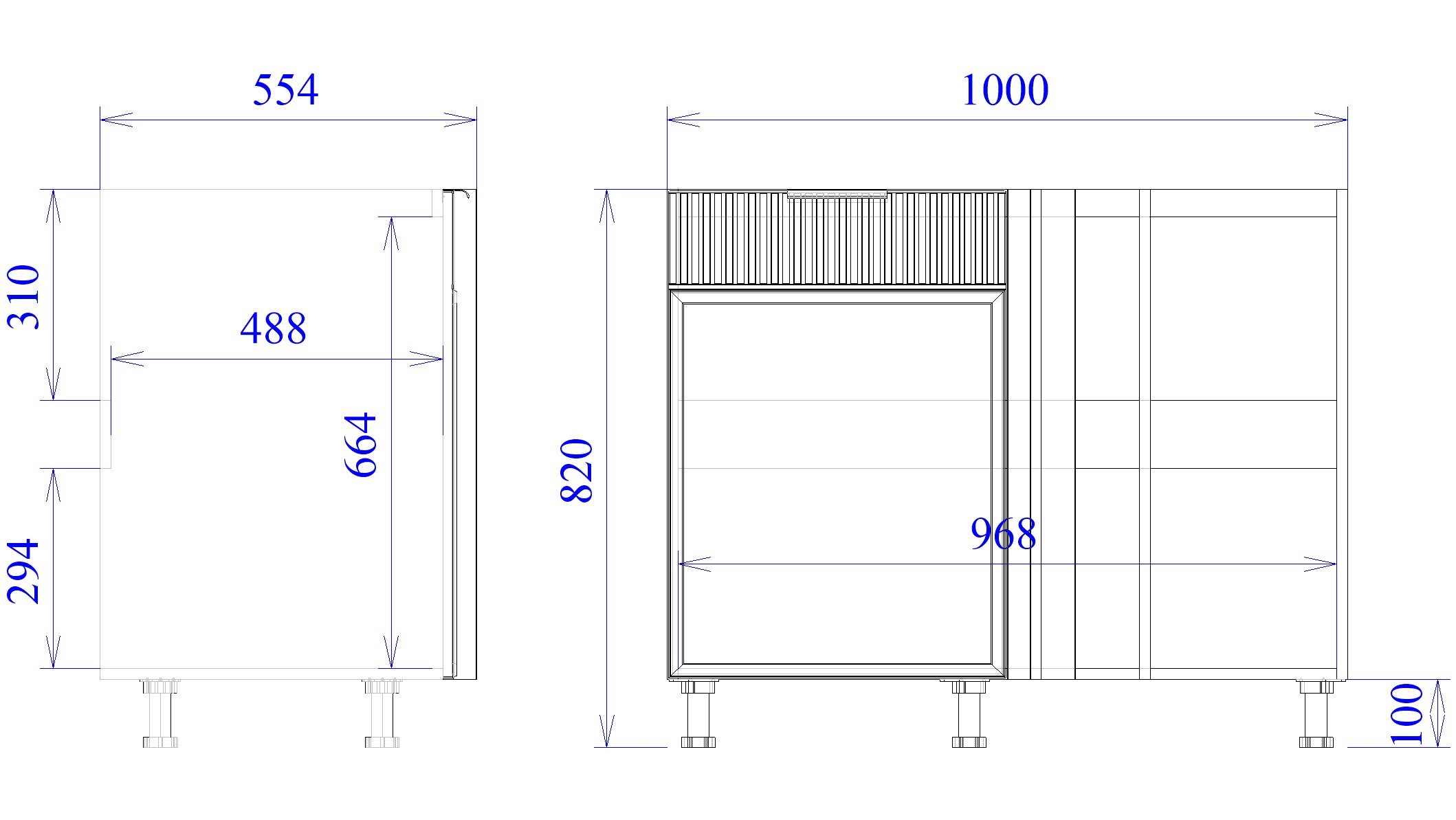 Направление расположения стола относительно угла кухни определяется при сборке.