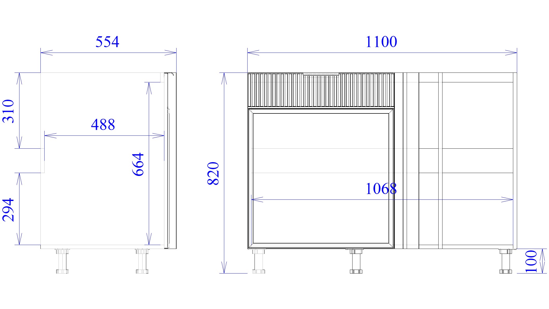 Направление расположения стола относительно угла кухни определяется при сборке.
