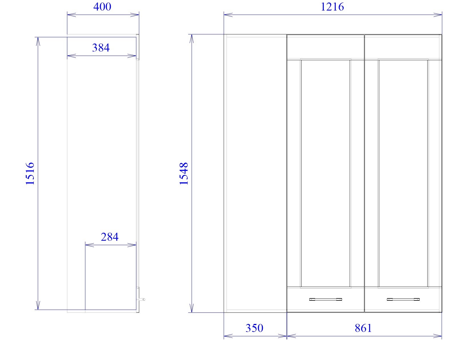 Конструкция пенала универсальная, можно расположить слева или справа от угла.
