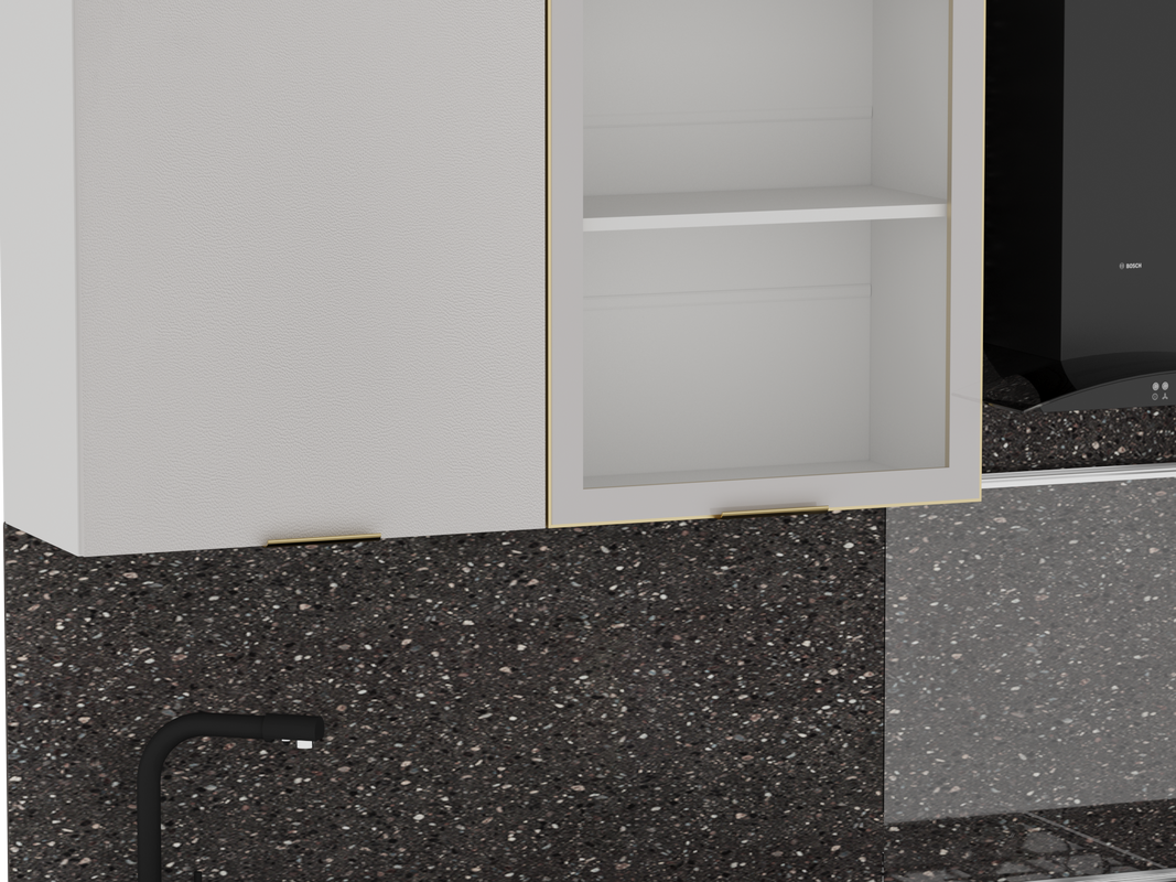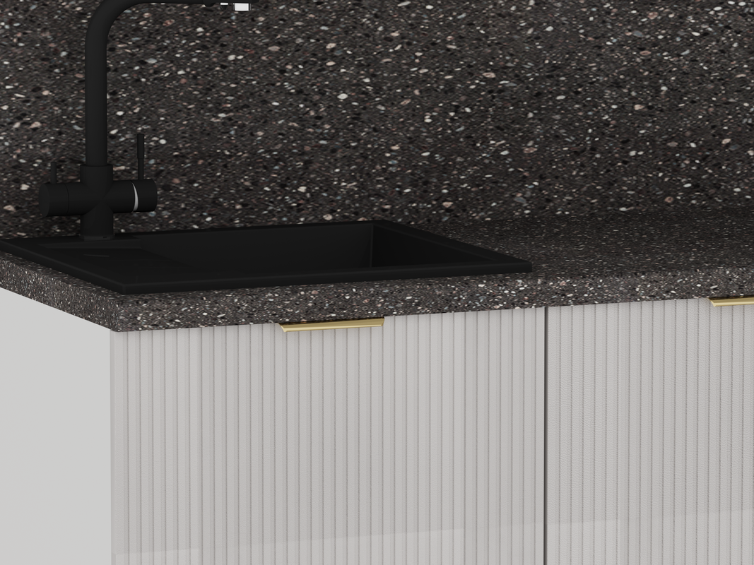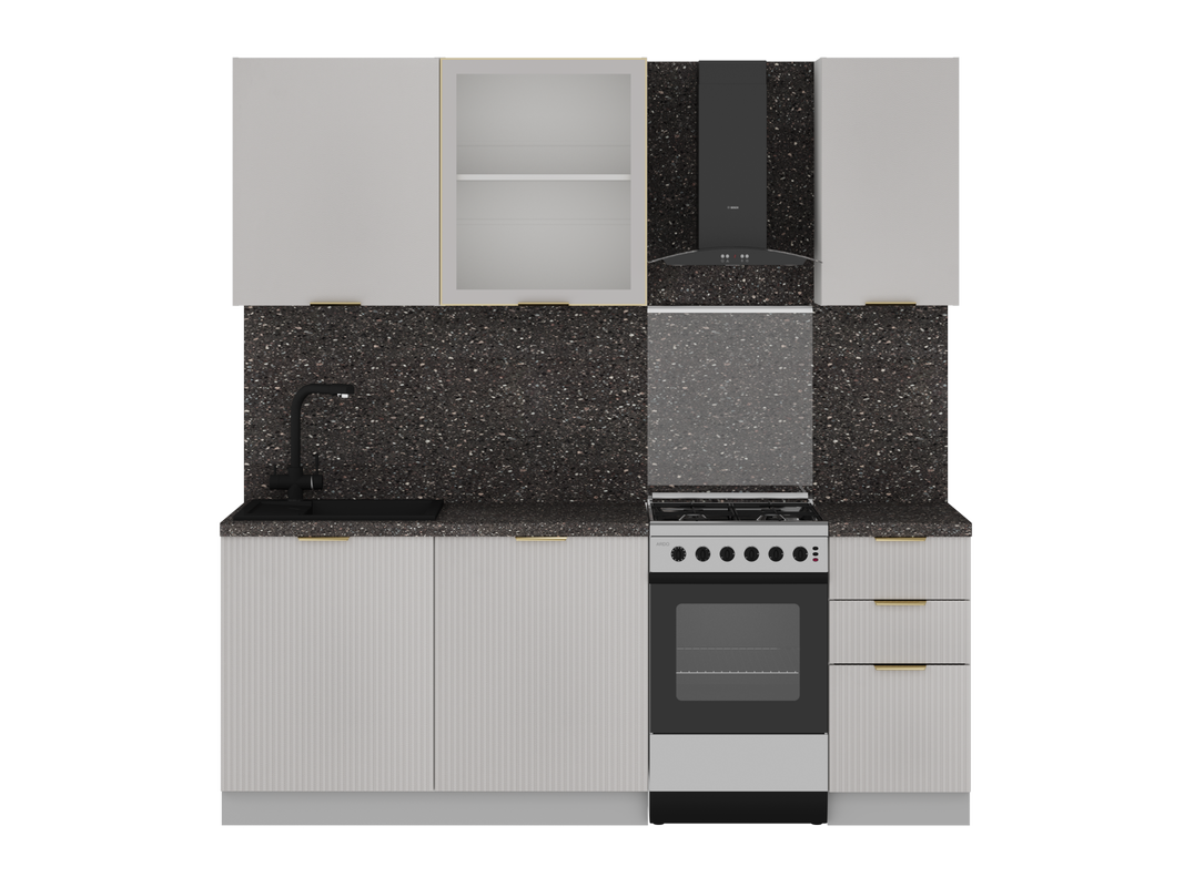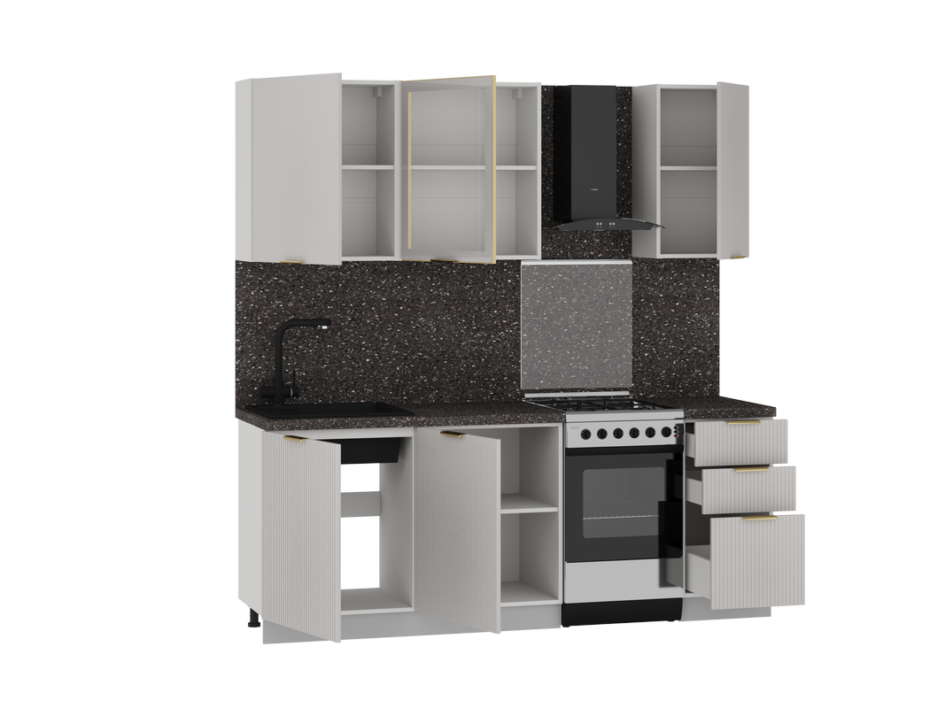 Модули в данной комплектации кухни можно менять местами, ориентируясь на свою планировку.