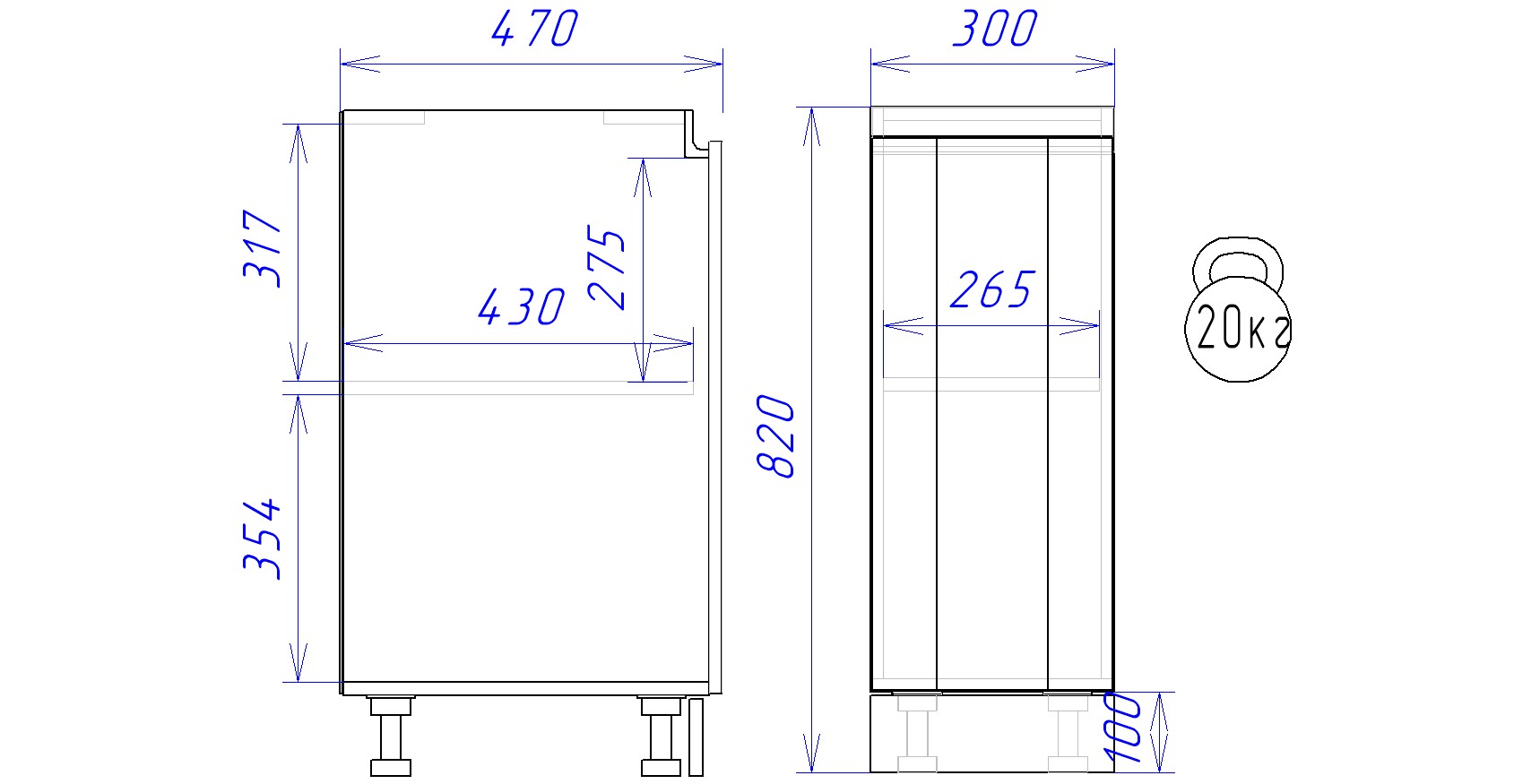 Столешница, цоколь и профиль-ручка Р-3 приобретаются отдельно.