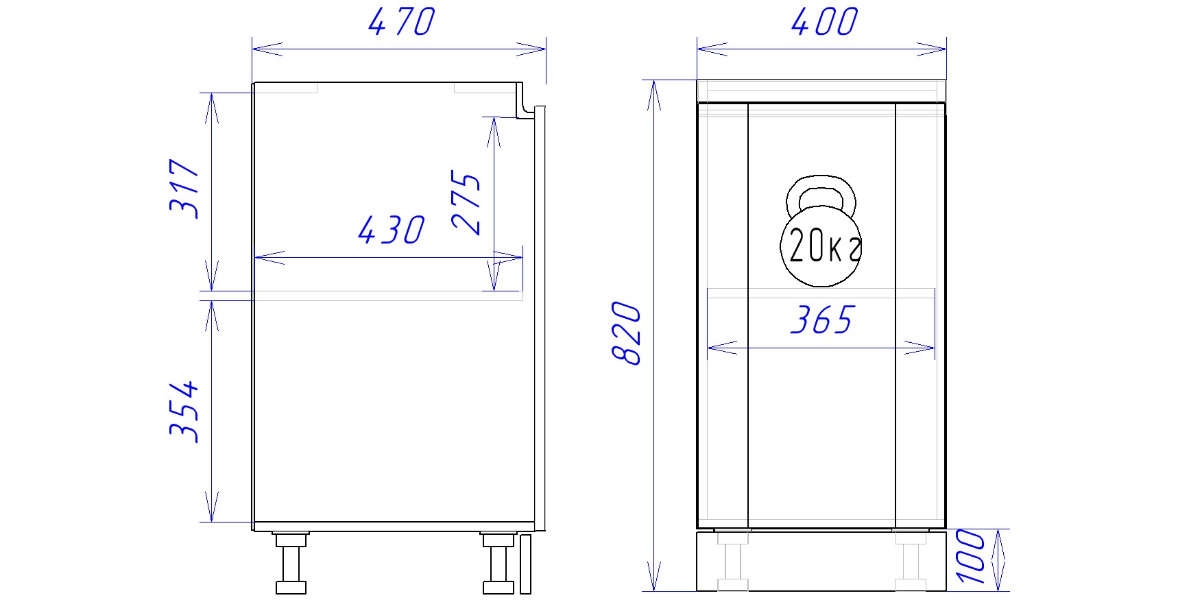 Столешница, цоколь и профиль-ручка Р-3 приобретаются отдельно.