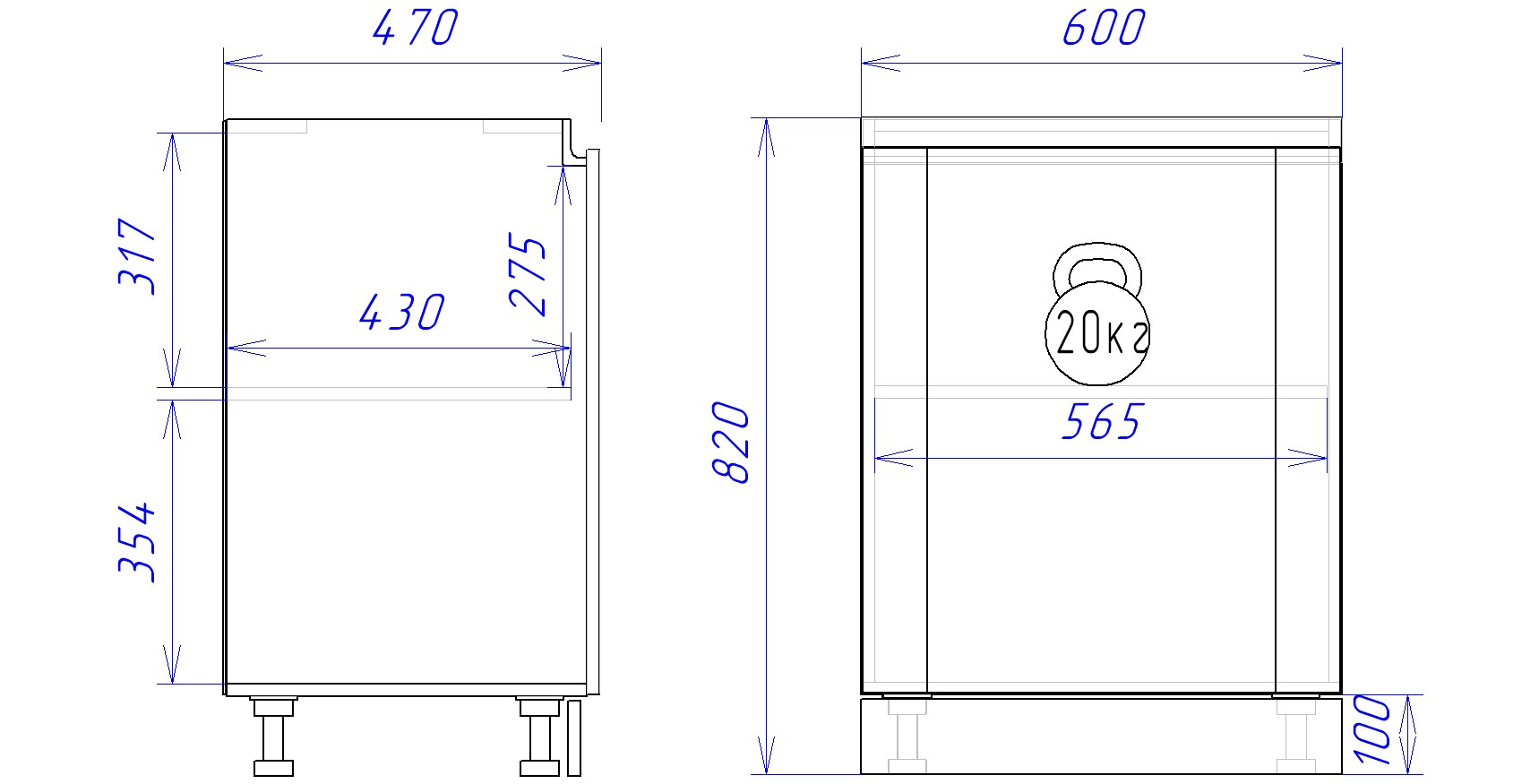 Столешница, цоколь и профиль-ручка Р-3 приобретаются отдельно.