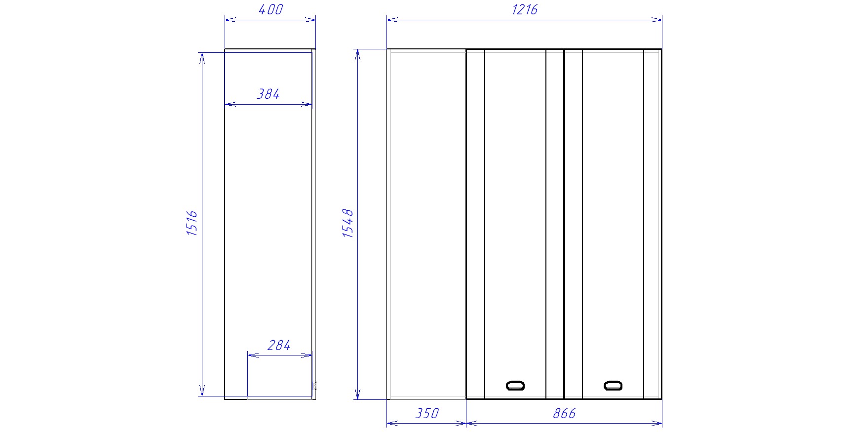 Конструкция пенала универсальная, можно расположить слева или справа от угла.