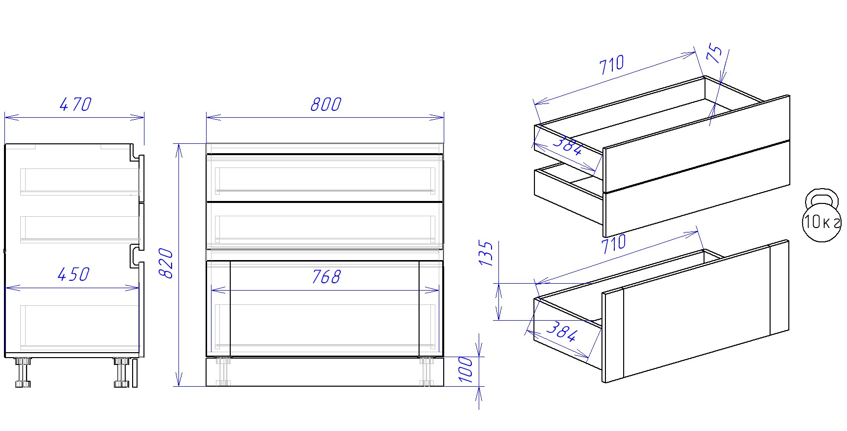 Столешница, цоколь, профиль-ручка Р-3 и Р-2 приобретаются отдельно.