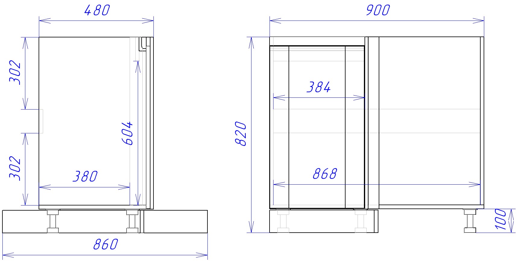 Столешница, цоколь и профиль-ручка Р-3 приобретаются отдельно.