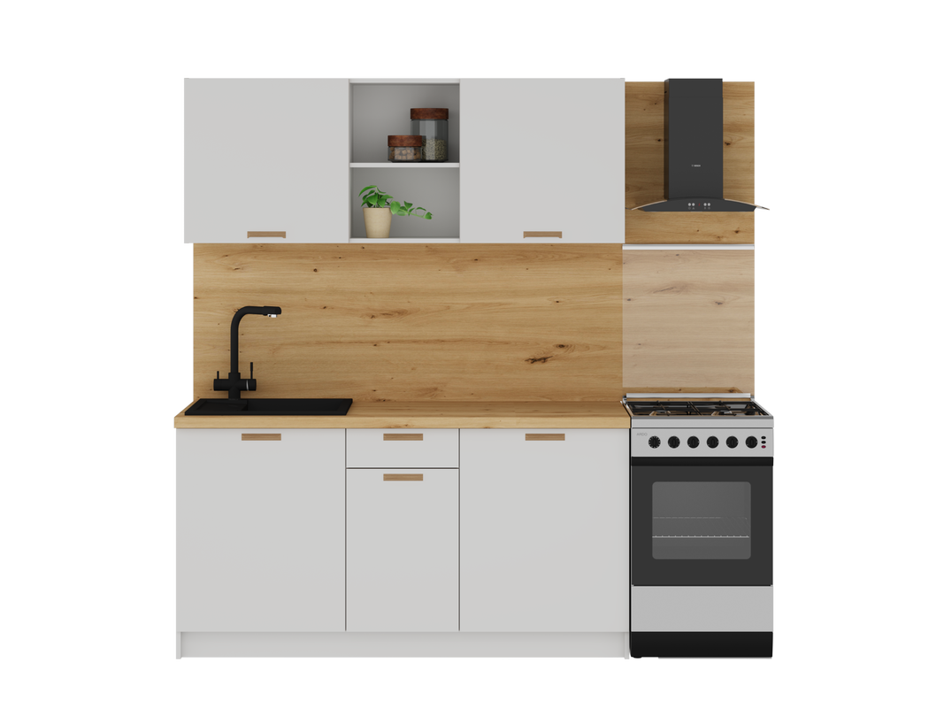Модули в данной комплектации кухни можно менять местами (зеркально), ориентируясь на свою планировку.