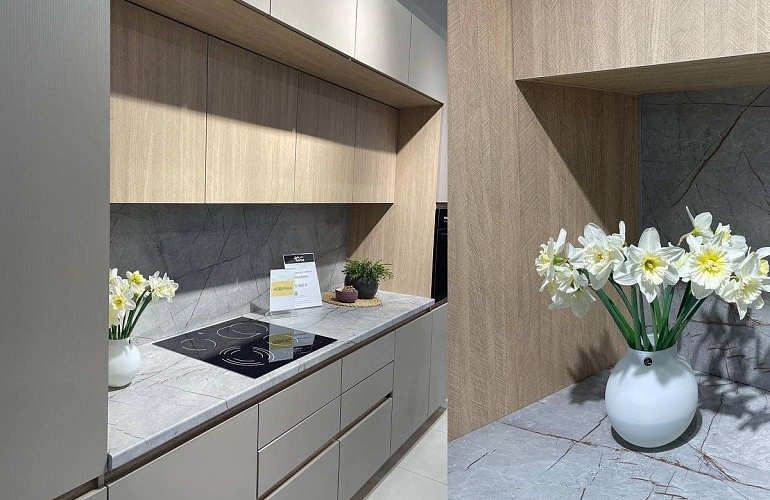 82Кухня с антресолями Женева — это новое решение, которое быстро набирает популярность. Такой гарнитур дает больше места для хранения, помогает спрятать вентиляцию и другие коммуникации. Широкий модульный ряд кухни поможет вам сделать каждый сантиметр пространства полезным, что особенно важно там, где маленькая площадь.
