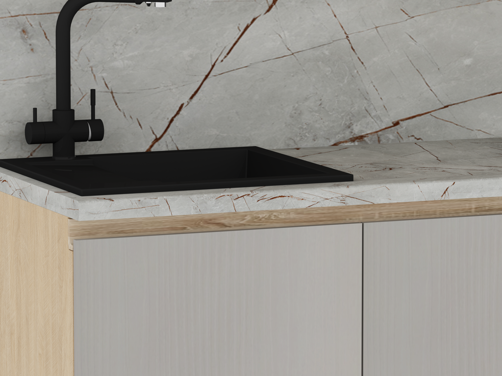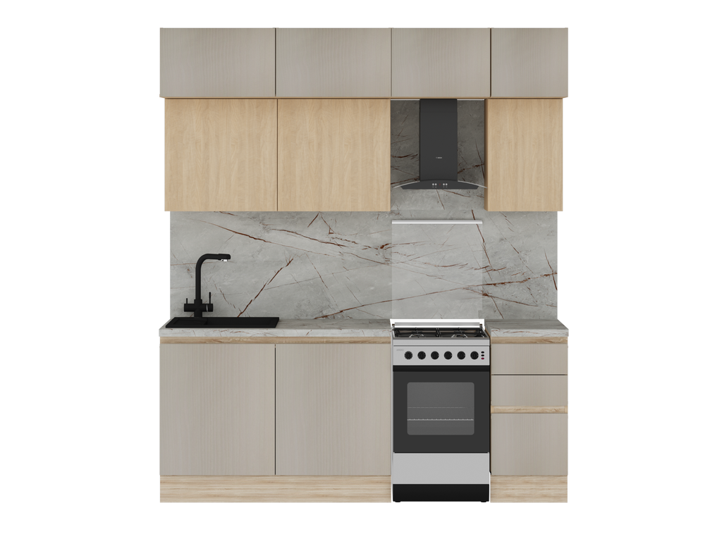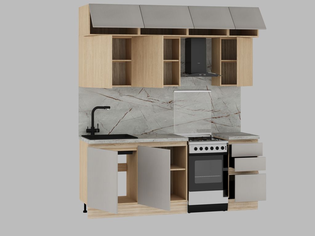 Модули в данной комплектации кухни можно менять местами, ориентируясь на свою планировку.