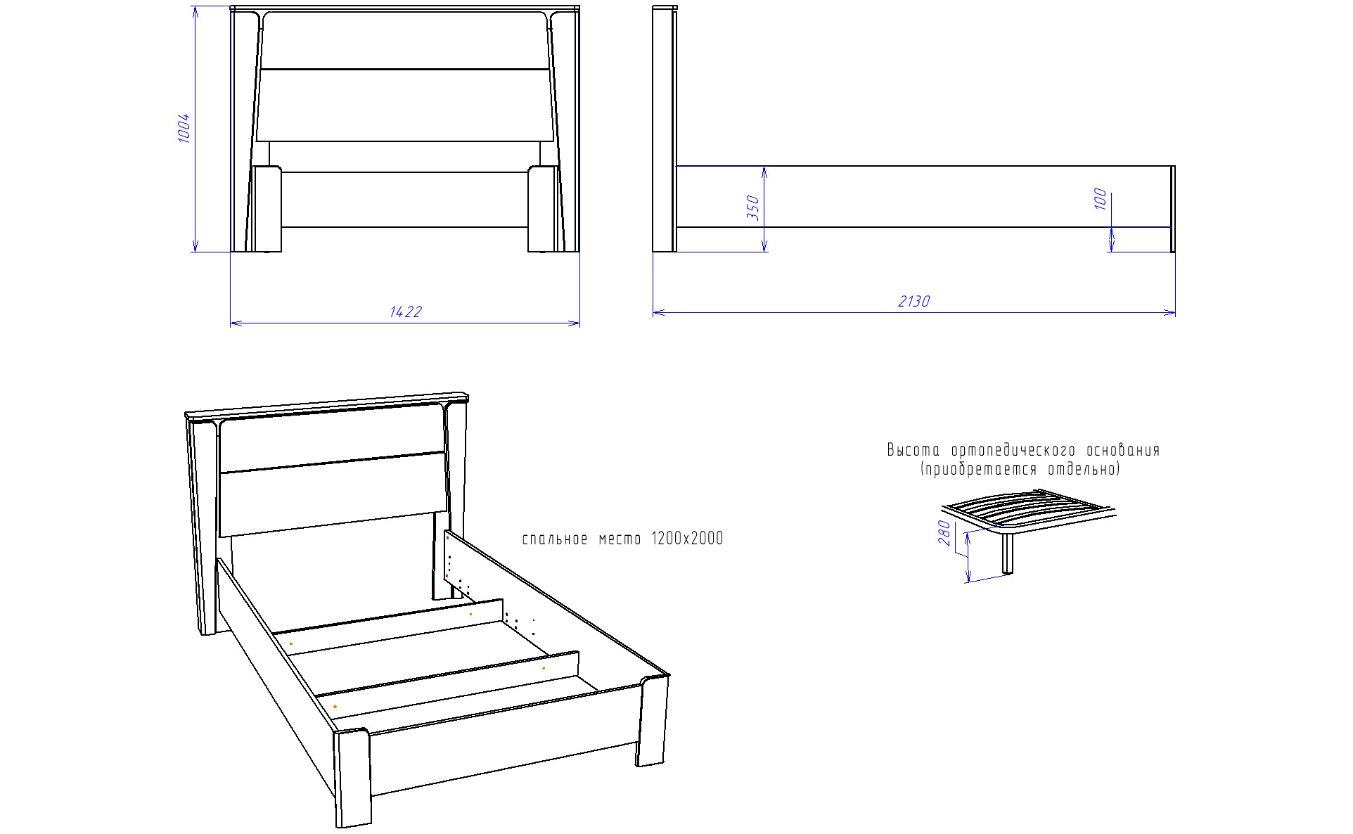 Матрац и ортопедическое основание в комплект не входят, необходимо приобрести отдельно.