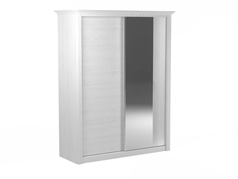 Шкаф-купе Клер дополнен декоративным карнизом и высоким зеркальным полотном.