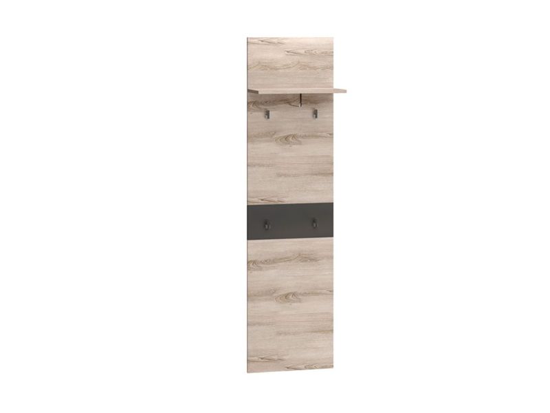 Модель не занимает много места, при этом позволяет аккуратно повесить на крючках повседневную верхнюю одежду, а на полочке — хранить головные уборы или коробку с сезонными аксессуарами.
