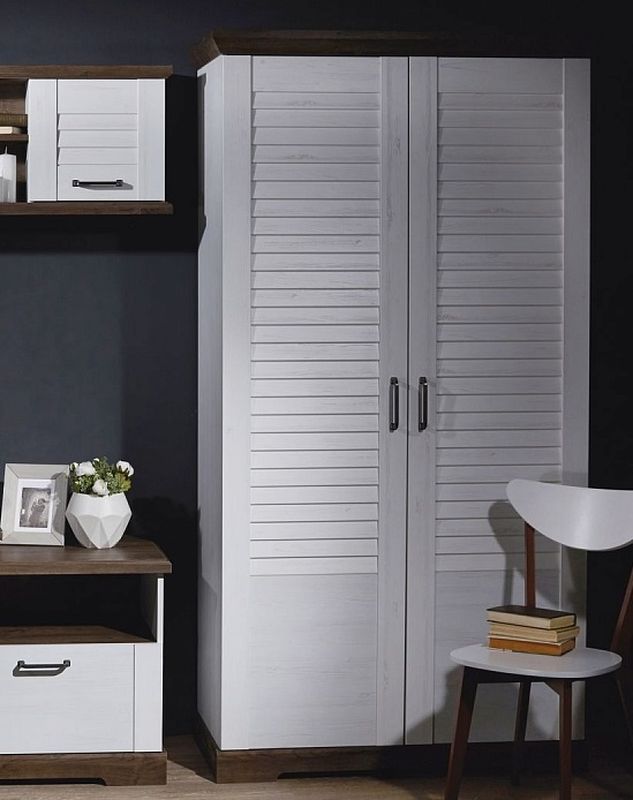 Шкаф для одежды 2-х дверный Кантри, Сосна Андрерсен/Орех Риббек темный отражает тренд на лаконичность: никаких вычурных элементов, все внимание на выигрышную текстуру и оригинальную расцветку под дерево. А за красивым фасадом скрывается хорошо продуманное внутреннее пространство, на удивление даже более вместительное, чем можно было бы подумать, глядя на габариты (1 124*556*2 104мм).