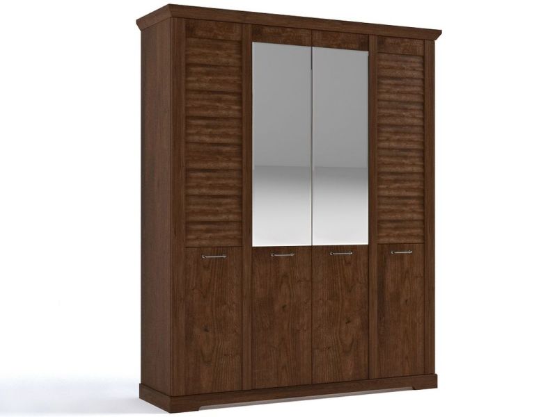 Шкаф 4-х дверный Кантри, Орех Риббек темный отражает тренд на лаконичность: никаких вычурных элементов, все внимание на выигрышную текстуру и оригинальную расцветку под дерево. А за красивым фасадом скрывается хорошо продуманное внутреннее пространство, на удивление даже более вместительное, чем можно было бы подумать, глядя на габариты (1 860*558*2 300мм).