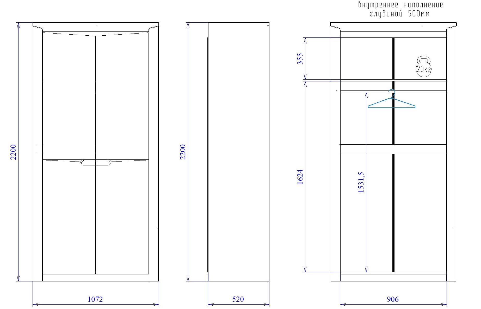 Шкаф 2-х дверный 2200 Prime Гарда, Дуб Винтерберг отражает тренд на лаконичность: никаких вычурных элементов, все внимание на выигрышную текстуру и оригинальную расцветку под дерево. А за красивым фасадом скрывается хорошо продуманное внутреннее пространство, на удивление даже более вместительное, чем можно было бы подумать, глядя на габариты (1 072*520*2 200мм).