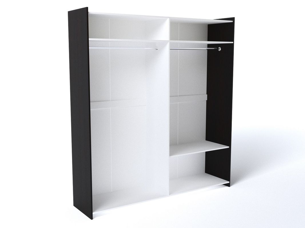 Шкаф разделен на две части. В них располагаются вверху: полка и штанга для вешалок.