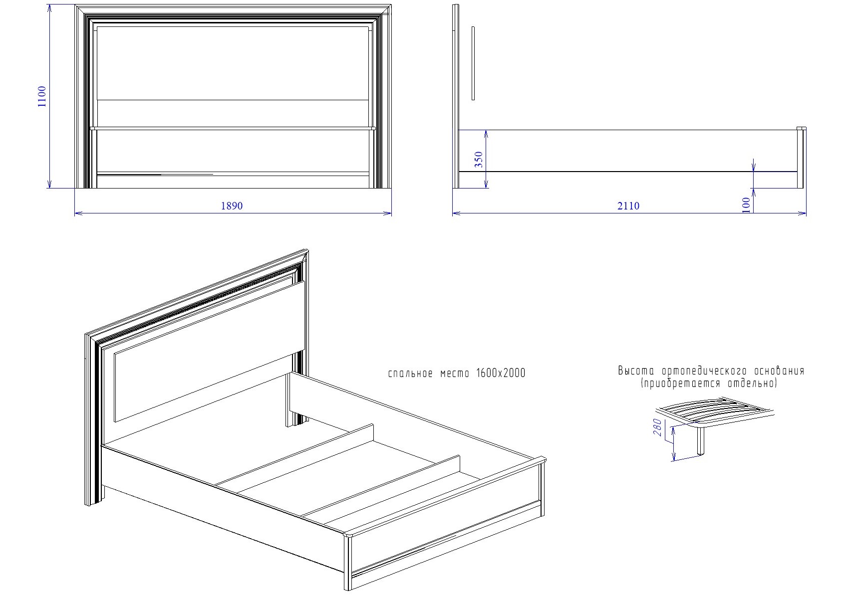 Матрац и ортопедическое основание в комплект не входят, необходимо приобрести отдельно.