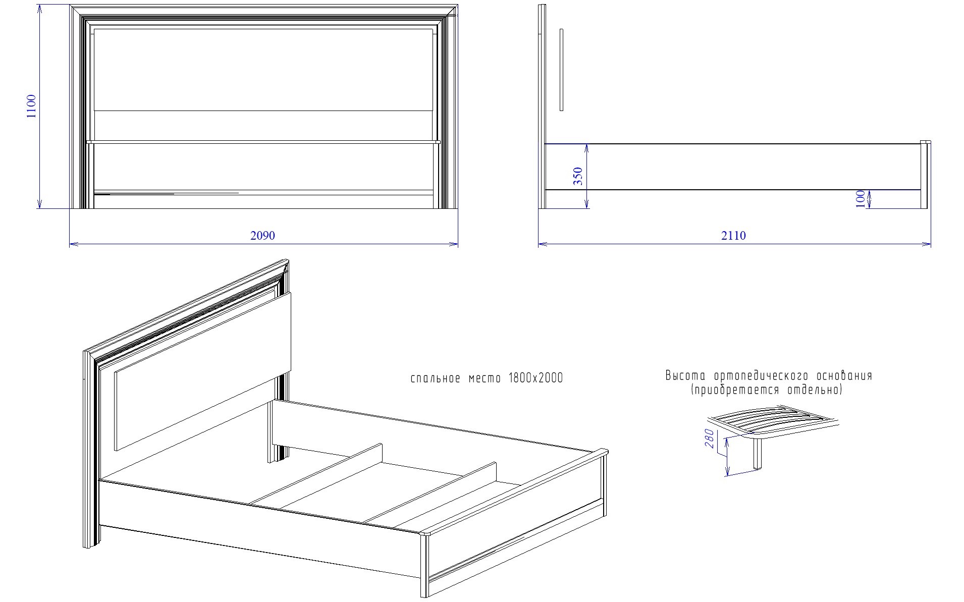 Матрац и ортопедическое основание в комплект не входят, необходимо приобрести отдельно.