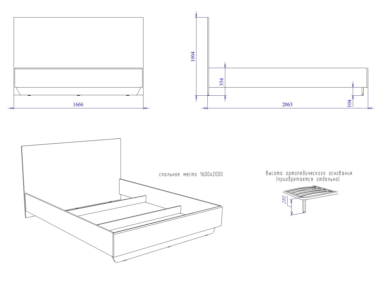 Углубление под матрас – это расстояние от основы, на которую будет укладываться матрас, до верхней точки боковой части (бортика). |
