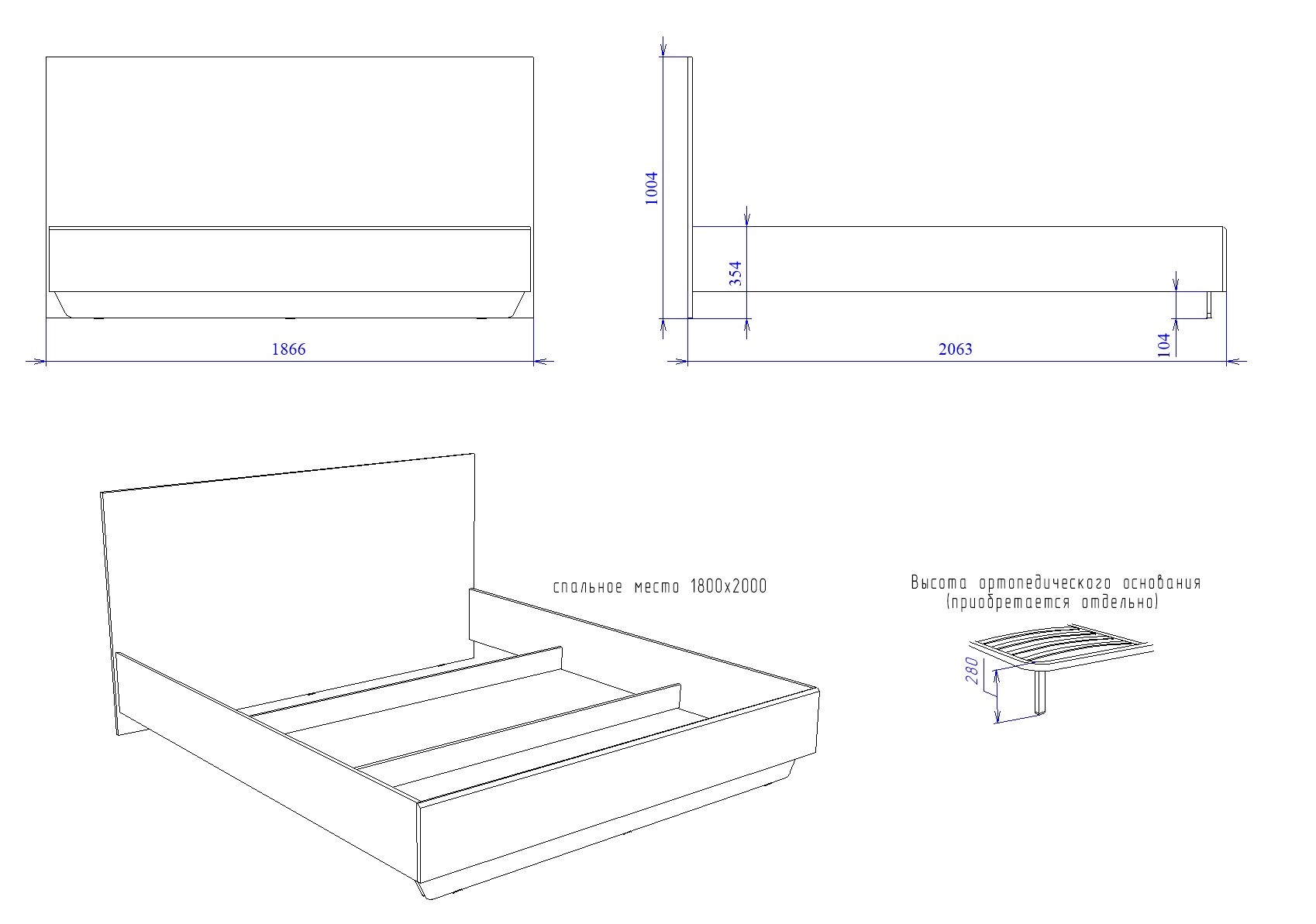Углубление под матрас – это расстояние от основы, на которую будет укладываться матрас, до верхней точки боковой части (бортика). |