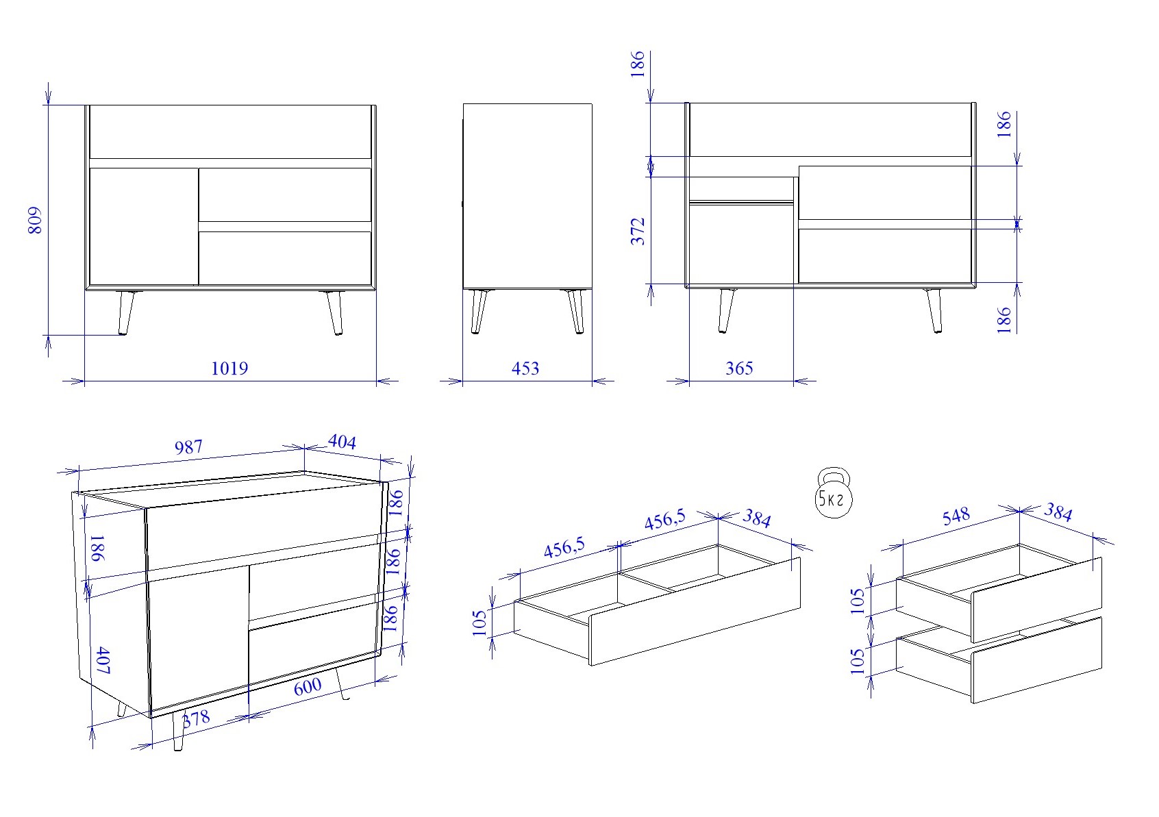 За счёт пространства для открывания ящиков комода, создаётся интересный геометрический эффект.