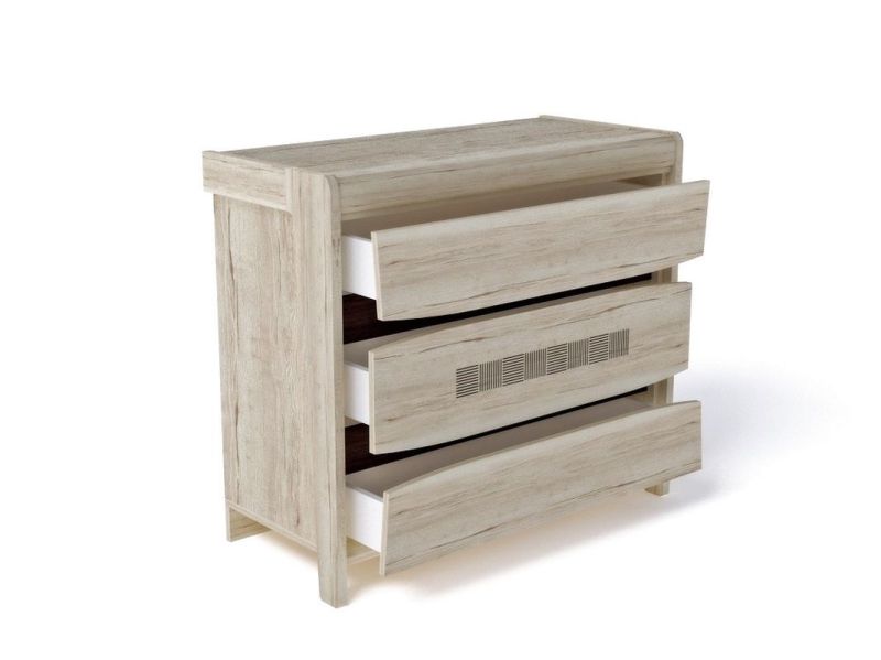 В комоде малом Мале расположены три выжвижных ящика. Шариковые направляющие надежно удерживают ящики при открывании.