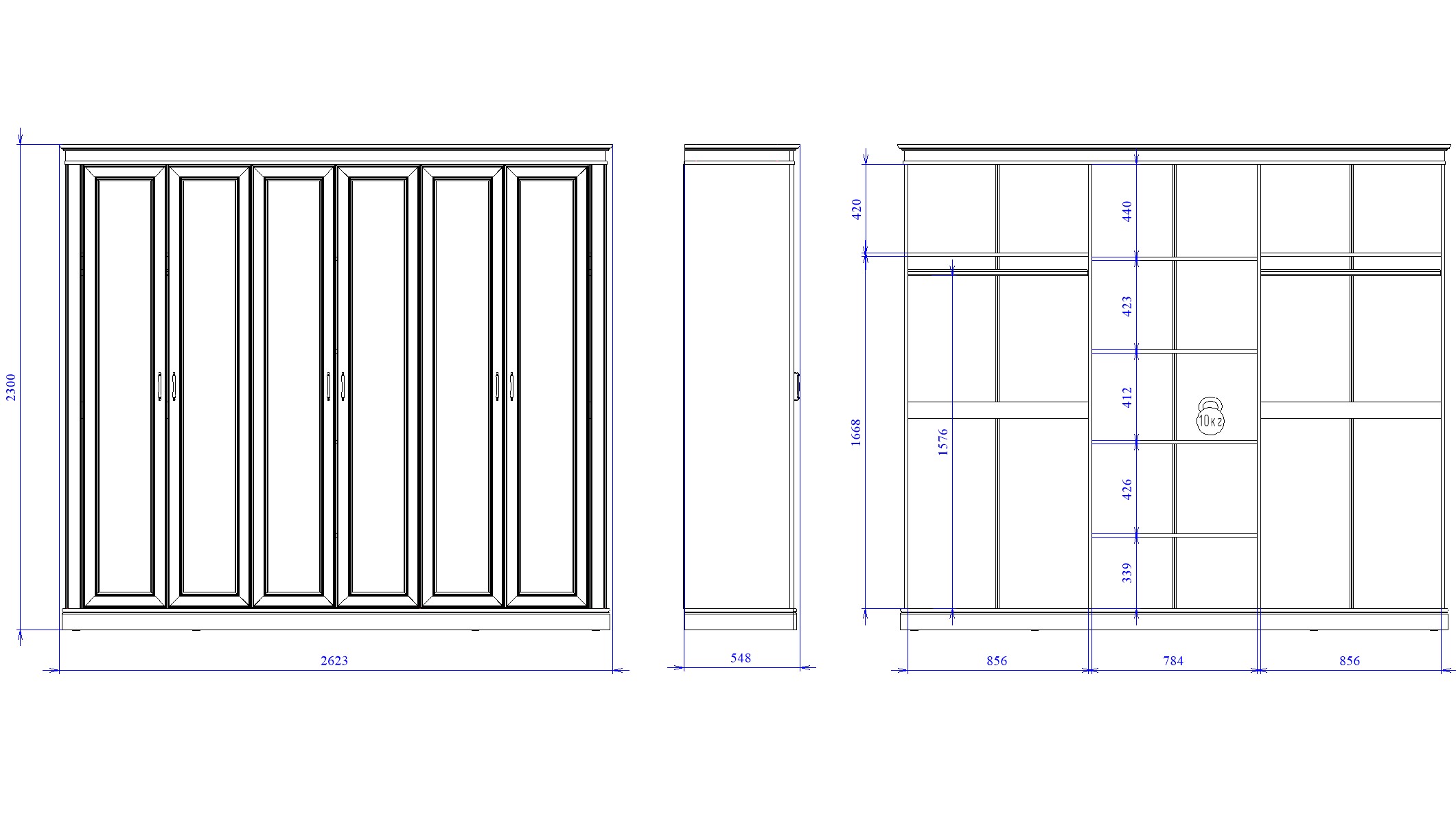 Шкаф 6-ти дверный Сиена, Береза бежевая отражает тренд на лаконичность: никаких вычурных элементов, все внимание на выигрышную текстуру и оригинальную расцветку под дерево. А за красивым фасадом скрывается хорошо продуманное внутреннее пространство, на удивление даже более вместительное, чем можно было бы подумать, глядя на габариты (2 623*548*2 300мм).