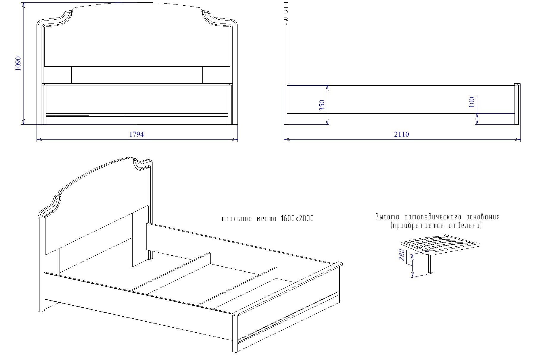 Матрац в комплект не входит, необходимо приобрести отдельно.