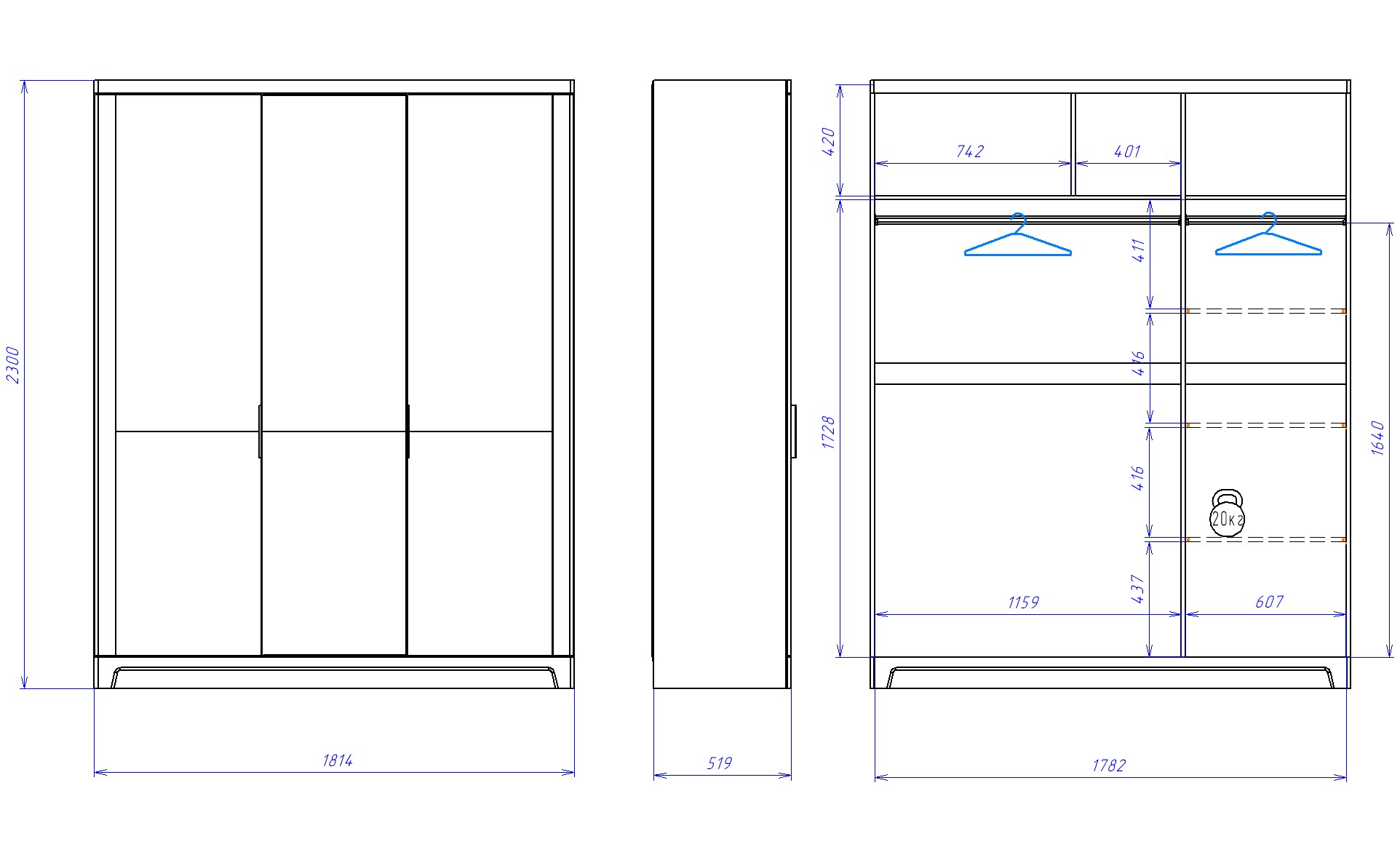 Шкаф 3-х дверный широкий глухой Юта, Дуб Мария отражает тренд на лаконичность: никаких вычурных элементов, все внимание на выигрышную текстуру и оригинальную расцветку под дерево. А за красивым фасадом скрывается хорошо продуманное внутреннее пространство, на удивление даже более вместительное, чем можно было бы подумать, глядя на габариты (1 814*519*2 300мм).