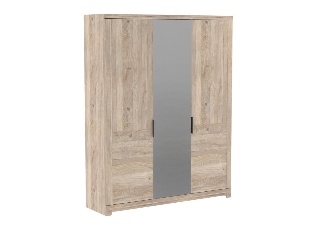 Шкаф 3-х дверный широкий зеркальный Юта, Дуб Мария отражает тренд на лаконичность: никаких вычурных элементов, все внимание на выигрышную текстуру и оригинальную расцветку под дерево. А за красивым фасадом скрывается хорошо продуманное внутреннее пространство, на удивление даже более вместительное, чем можно было бы подумать, глядя на габариты (1 814*519*2 300мм).
