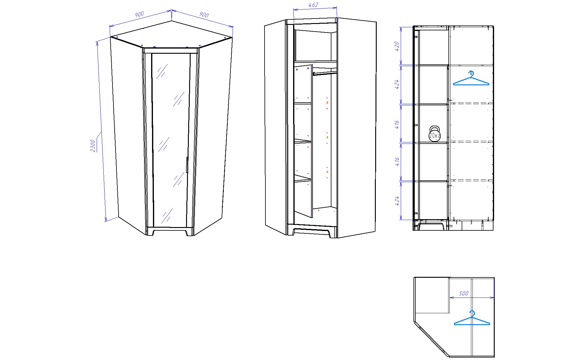 По необходимости укомплектуйте дополнительными полками в угловой шкаф из этой коллекции.
