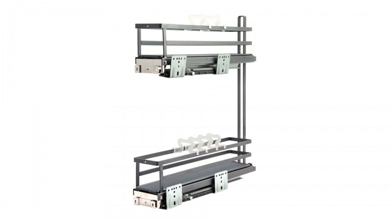 Модель обладает стильным европейским внешним видом, плоской формой боковых прутков корзин. Сплошное дно с антискользящим покрытием и дополнительные съемные делители FLORA гарантируют максимальную устойчивость хранимой утвари на обоих этажах. Кроме того, дно можно легко снять для чистки и мытья.