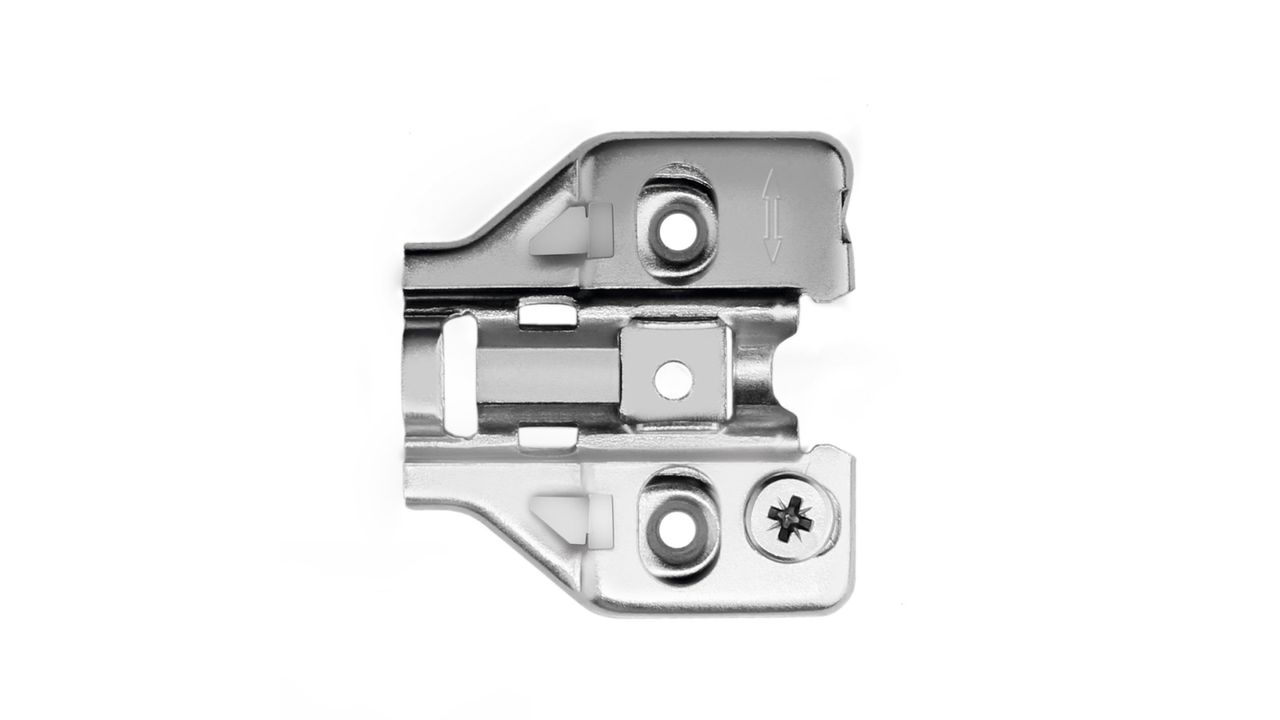 H5010 – трапециевидная планка с опцией эксцентриковой регулировки, созданная специально для петель линейки NEO. Планка позволяет в одно действие изменить положение фасада по высоте в диапазоне +/-2,5 мм. Крепёж возможно осуществить только с помощью мебельных саморезов, которые приобретаются отдельно. Если есть необходимость закрепить планку на евровинты, то для такого типа крепежа нужно выбрать планку H5030.