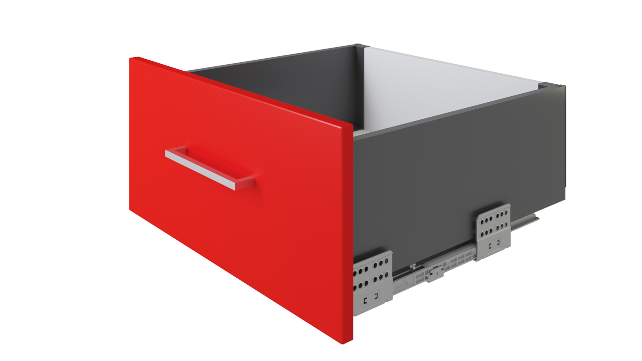 Прямые металлические боковины выдвижного мебельного ящика системы СТАРТ представлены в трёх цветах: графитовый, серый и белый. Прямые боковины отличает от традиционных эстетически более красивая лаконичная форма, которая также позволяет экономить внутреннее пространство ящика. Толщина прямых боковин – 12,8 мм. Боковины имеют качественное порошковое покрытие и прослужат весь эксплуатационный срок, даже в условиях агрессивной кухонной среды.