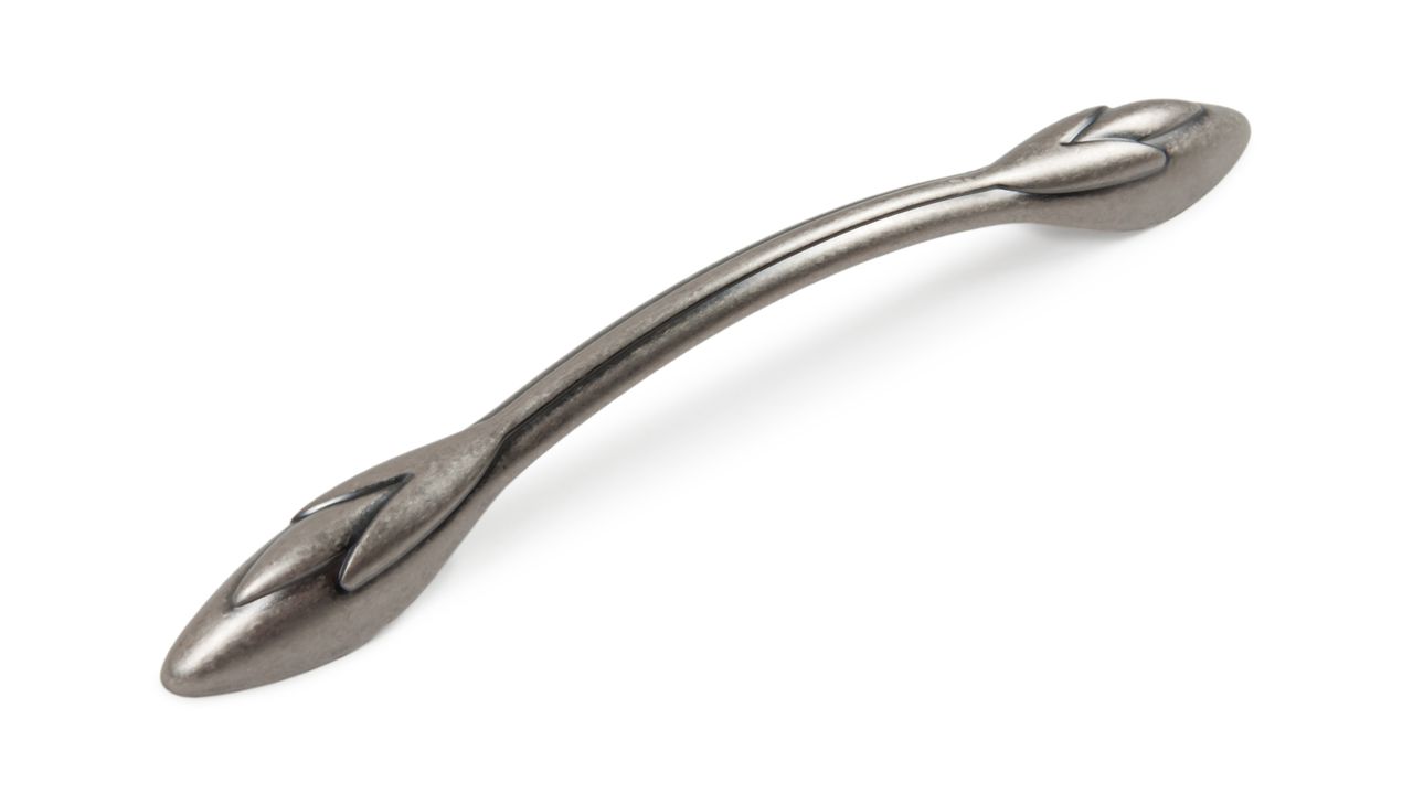 Ручка с растительным рисунком будет хороша на натуральных древесных фасадах или фасадах в покрытии с фактурой дерева, на мебели с фрезеровкой и даже патиной.