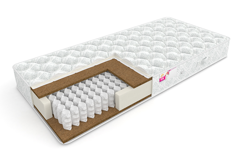 Пружинный блок «TFK», кокосовая койра — с двух сторон, ППУ — с двух сторон, объемная стежка, синтепоном и спанбондом.