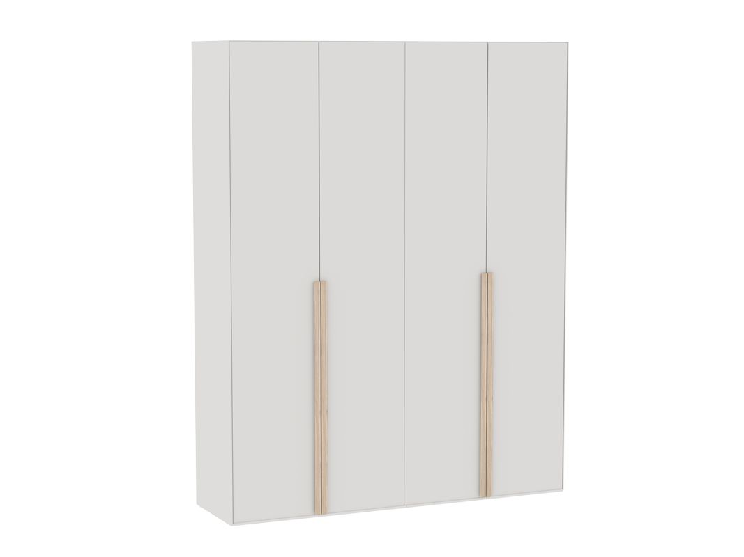 Для удобства открывания больших дверей шкафа применена ручка профиль из МДФ с окуткой в цвет дерева. Эта ручка также добавляет лаконичность данному изделию и нисколько не выбивается из общей концепции, которая подразумевает использование в основном однотонного декора и по минимуму древесного.
