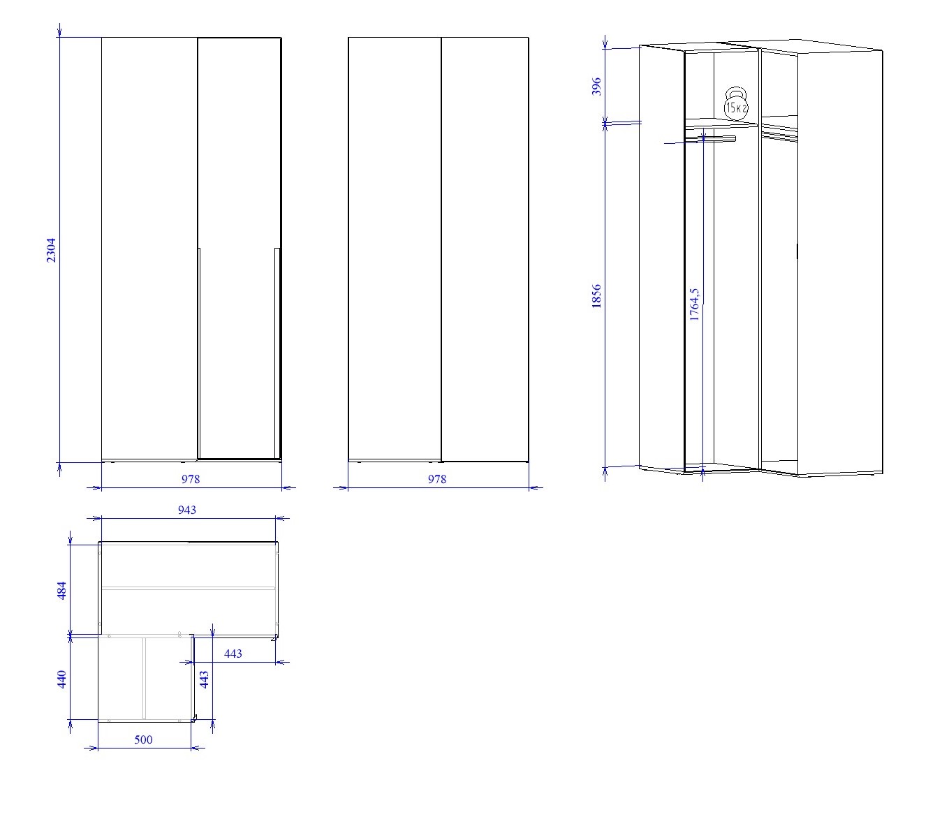 - Максимальная нагрузка на полку - 15кг