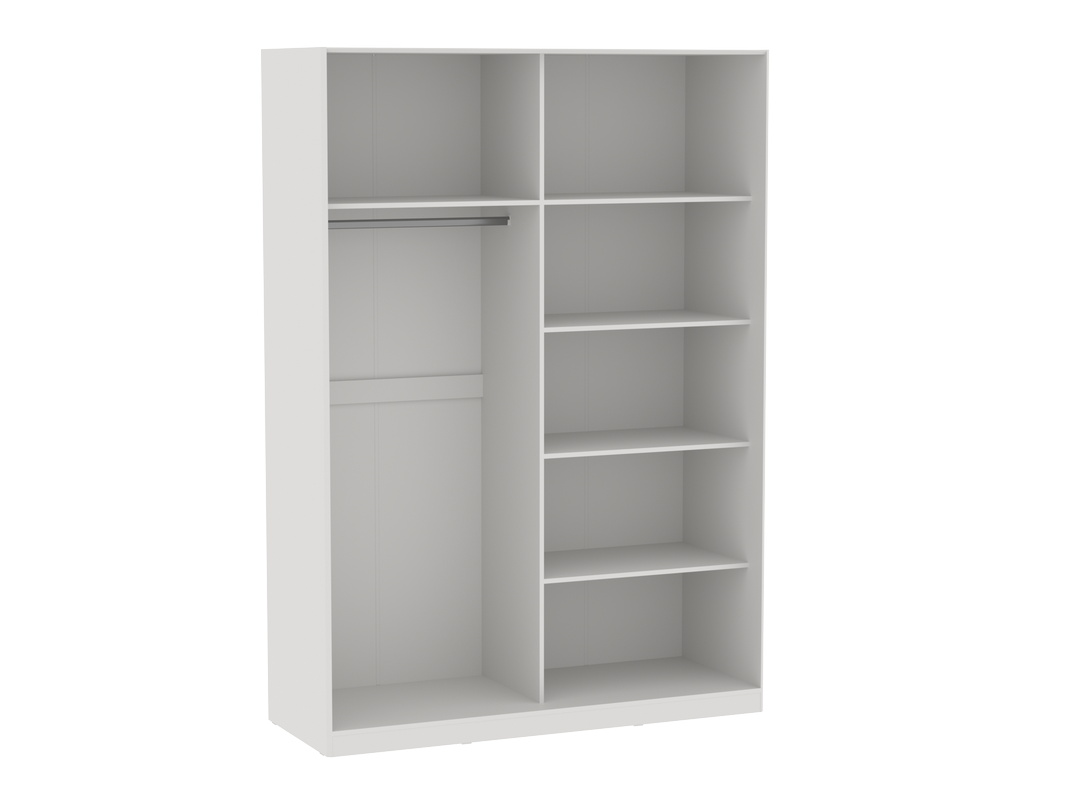 Для удобства открывания больших дверей-купе применена алюминиевая ручка профиль серебристого цвета. Эта ручка также добавляет лаконичность данному изделию и нисколько не выбивается из общей концепции, которая подразумевает использование в основном однотонного декора. Внутри вы найдёте штанги для одежды и полки для хранения. Благодаря продуманной организации пространства вы сможете легко разместить нужные вещи и поддерживать порядок в спальне.
