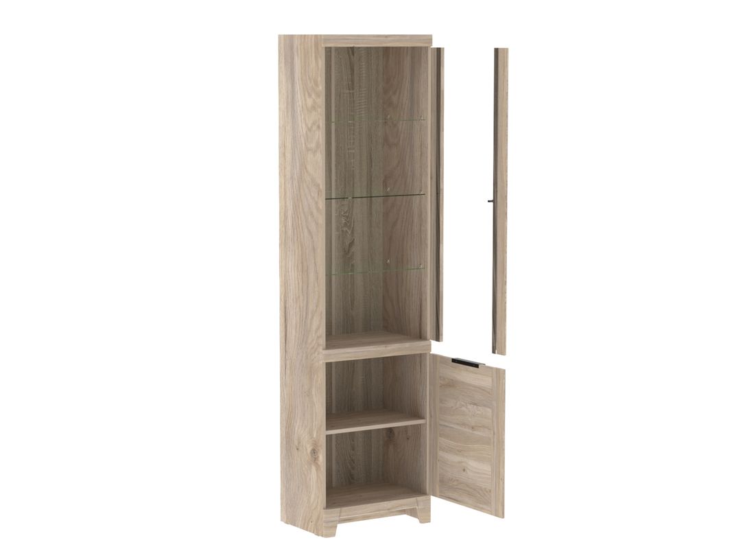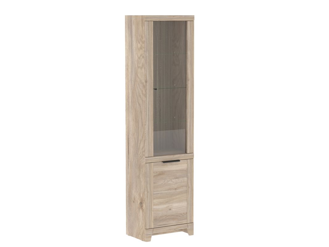 В конструкции пенала Юта нет острых углов, округлость и мягкость придают декоративные планки. Металлическая ручка-профиль выполненная в черном цвете подчеркивает натуральный древесный декор.