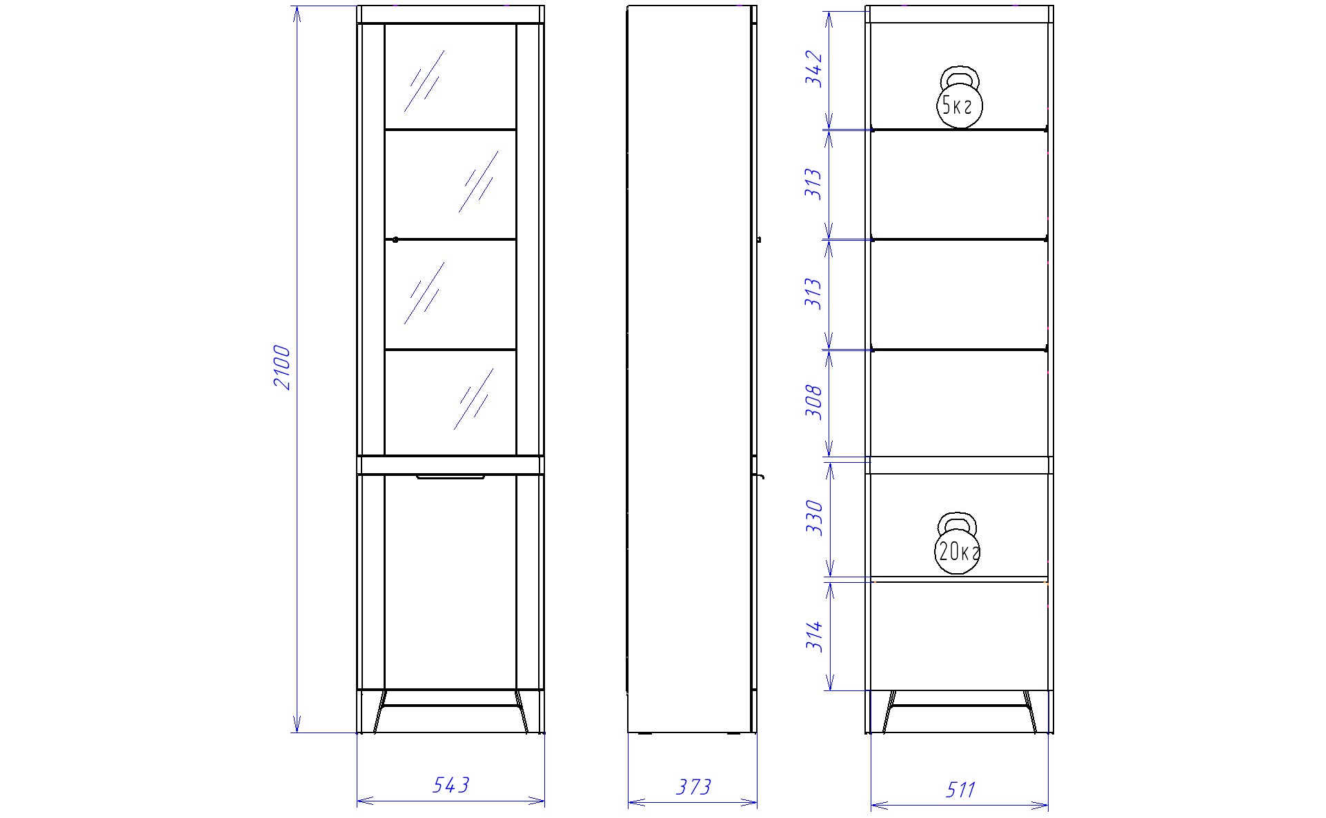 Направление открывания дверей определяется при сборке.